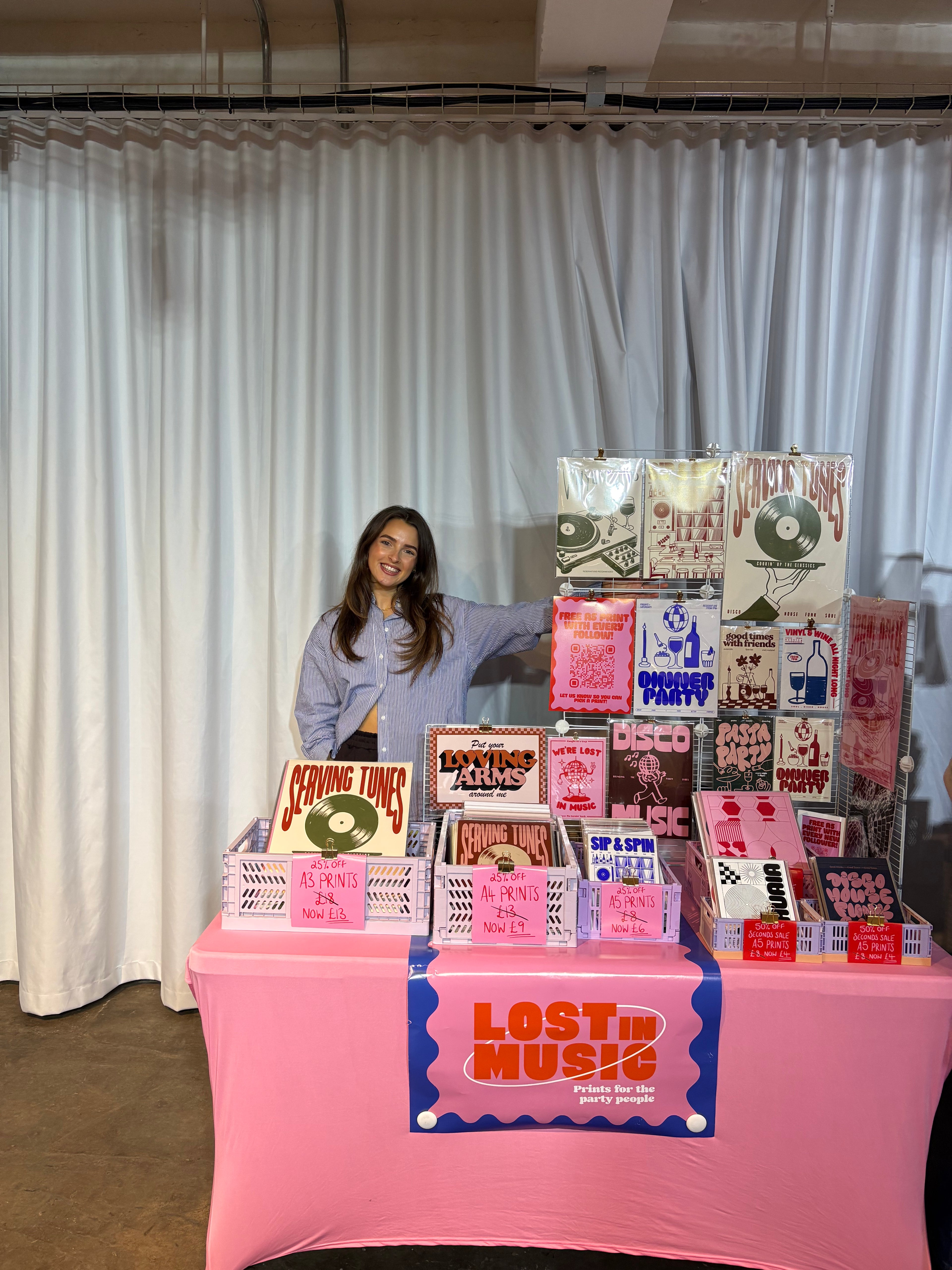 Hi, I’m Katie, the artist behind Juno. Based in London, my designs are inspired by music, travel, nostalgia and everyday feel-good moments, influenced by the bold style of gig posters and event flyers.